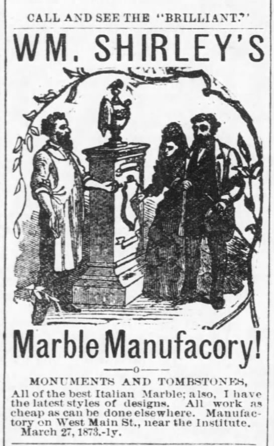 Shirley Monuments 1874 Posted on October 4, 2018 by historicmaurycounty Trackbacks are closed, but you can post a comment. 1874 ad for William Shirley